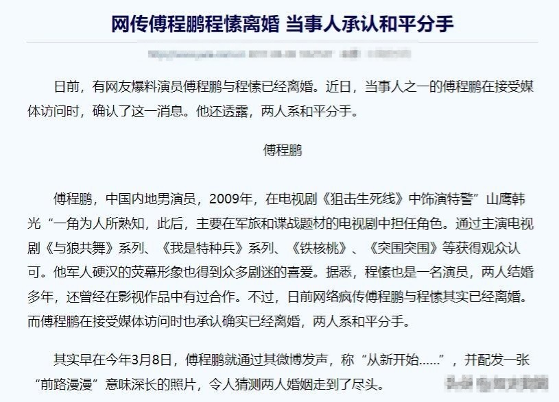 2017年,傅程鹏和程愫这对相伴超20年的夫妻,最终选择了分道扬镳;