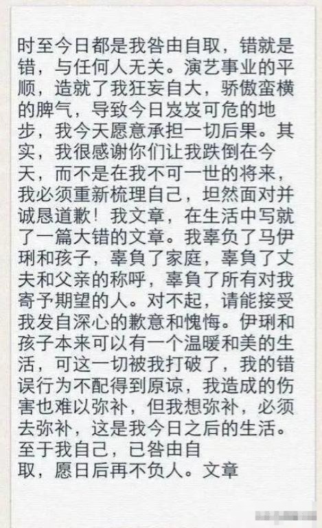 这是文章曾在一档节目中说过的话,但是他当时说得有多深情,此刻就显得有多讽刺。