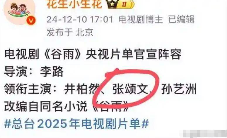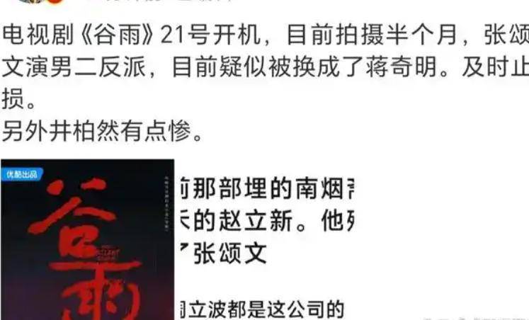 此外,还有网友称张颂文疑似被《谷雨》剧组换角。