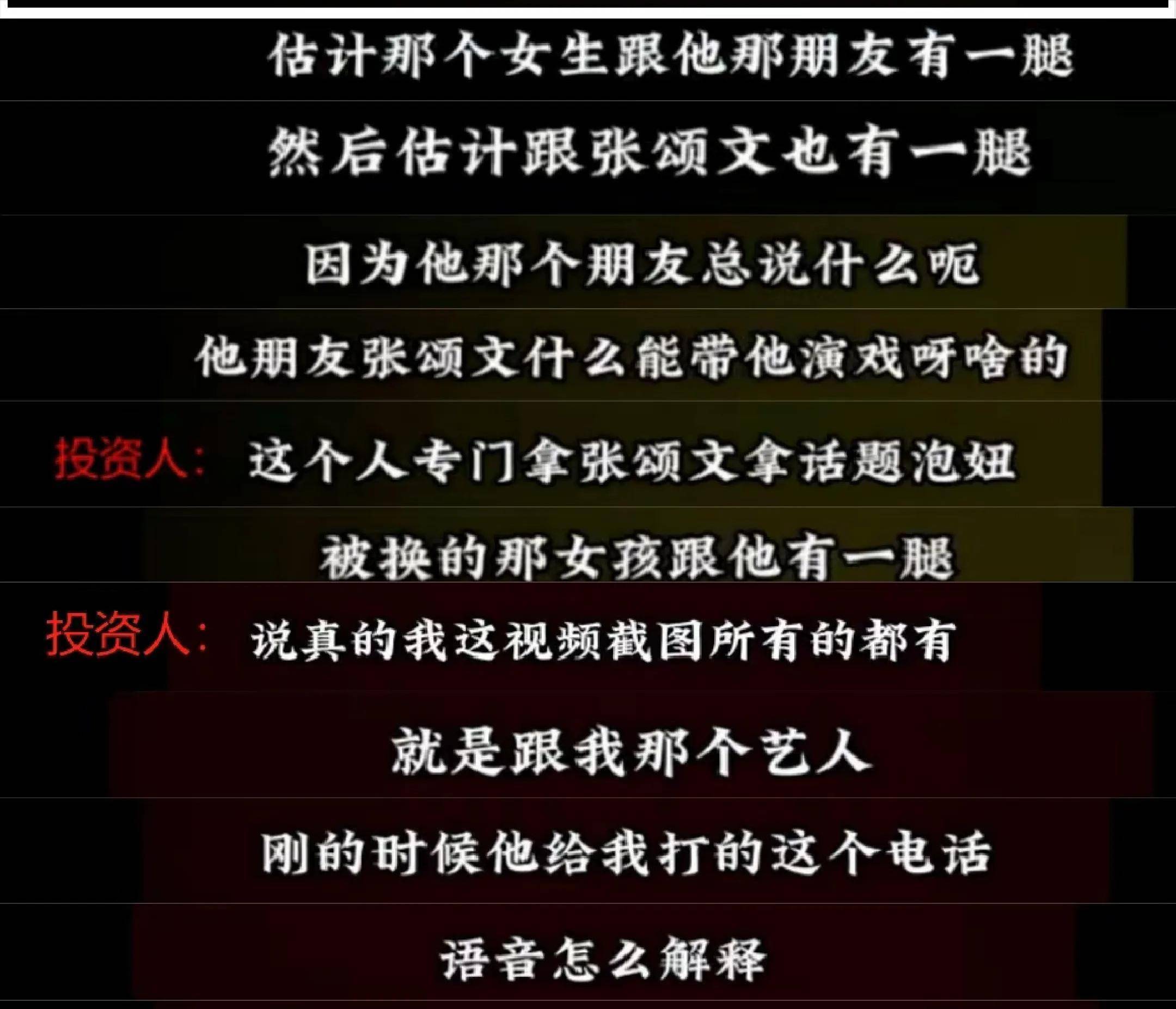 本以为张颂文这件事会不了了之,然而还没等到张颂文本人的回应,又有新的爆料不断出现,女方还放出大量的录音实锤。