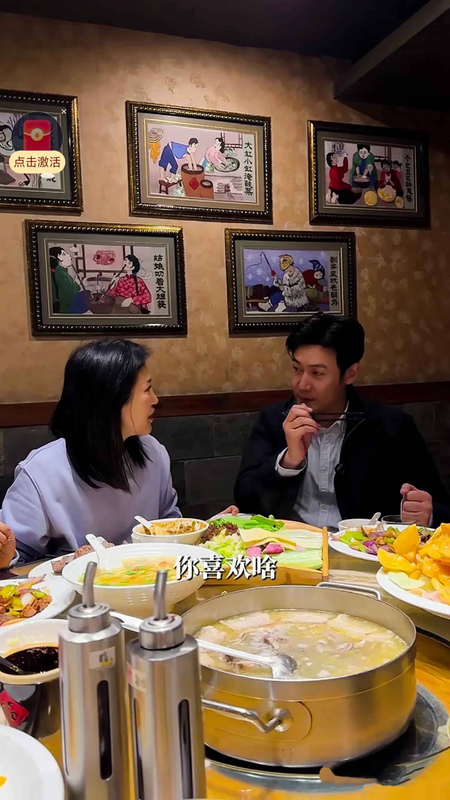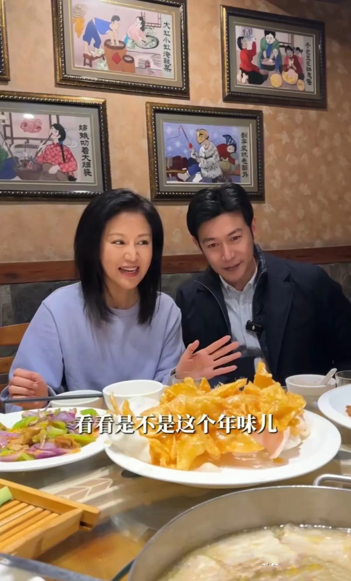鲍蕾很贴心的问陆毅,看看我点的这些菜,是不是很有年味。每个地方的年味都不一样,在东北年味就是那一大锅杀猪菜吧。