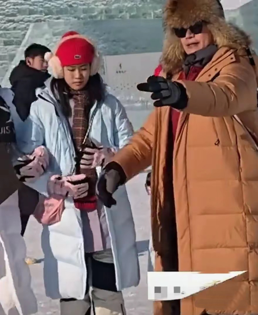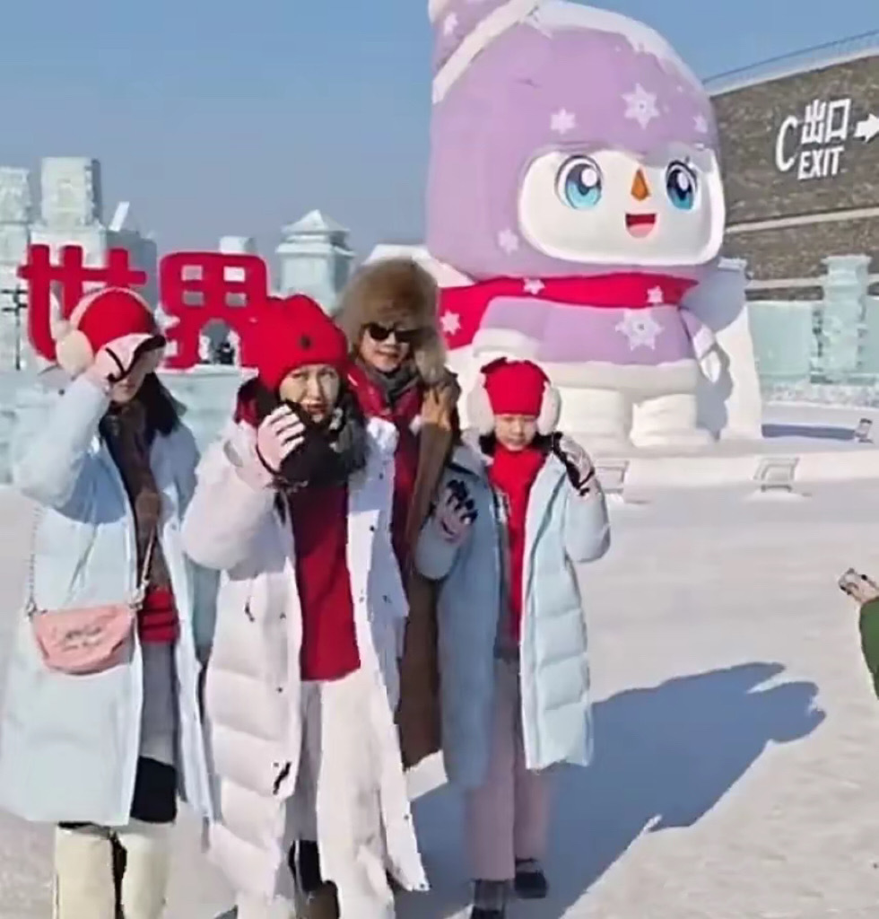 再看看两个女儿,贝尔和小叶子穿着浅紫色冲锋衣、黑色裤子,看起来有些单薄。哈尔滨的冬天实在太冷了,两个孩子有种瑟瑟发抖的感觉。