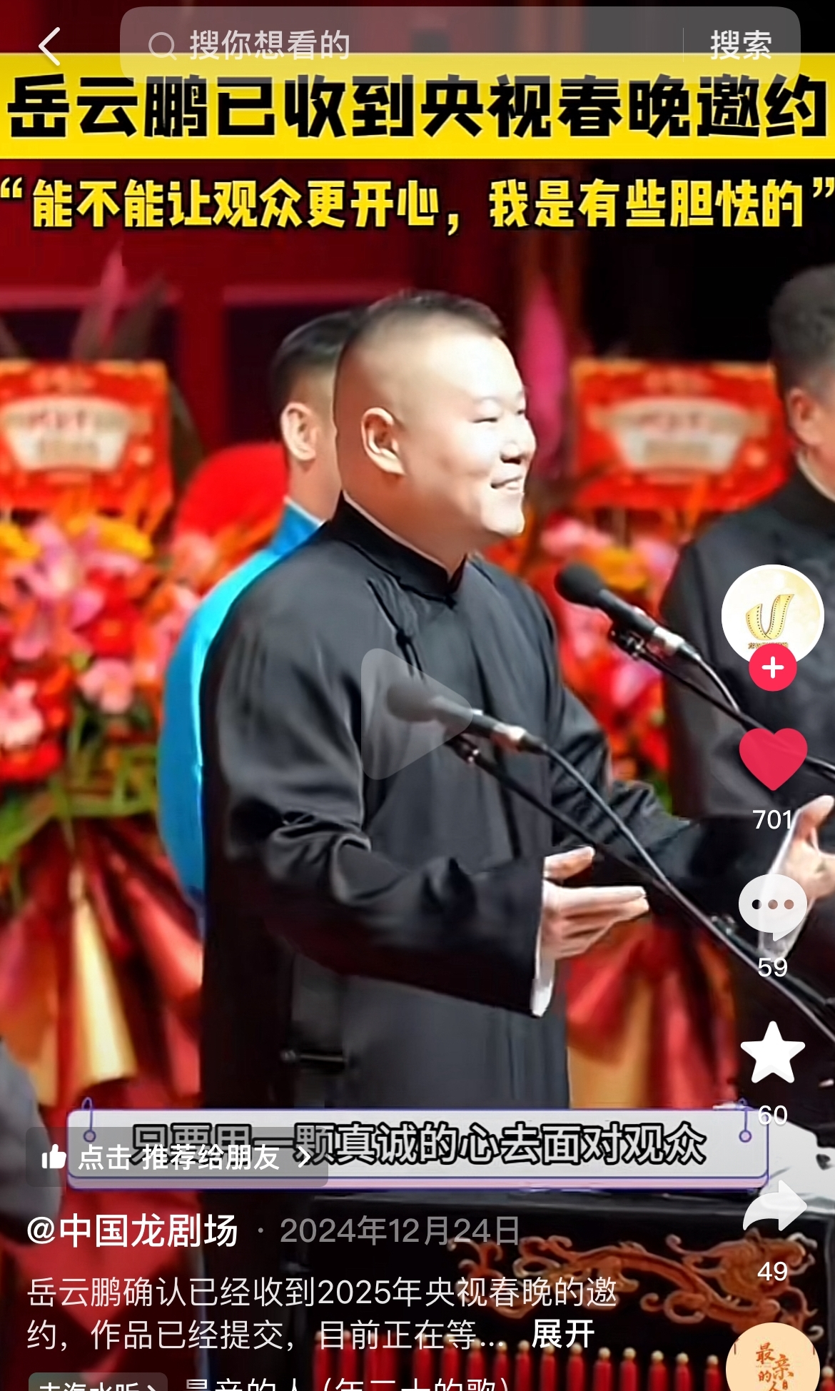 而观众更是期待今年春晚的节目,也希望小岳岳能带来一个好的作品。