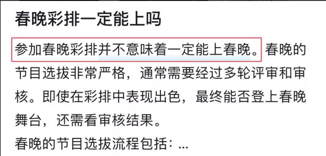 毕竟参与彩排并不意味着能上春晚。
