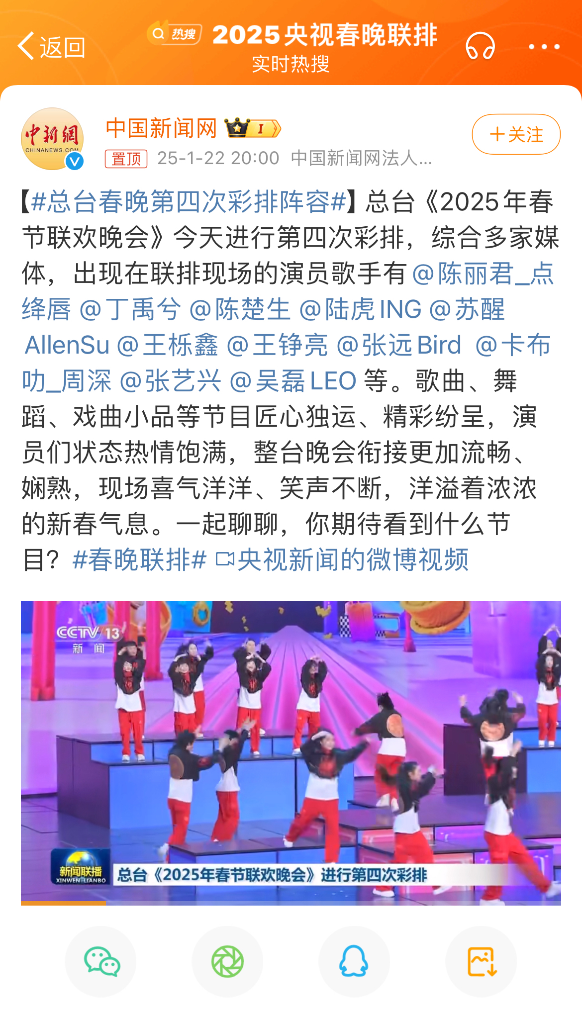 到了央视第四次春晚联排,观众们仍然很是关注参与的嘉宾。