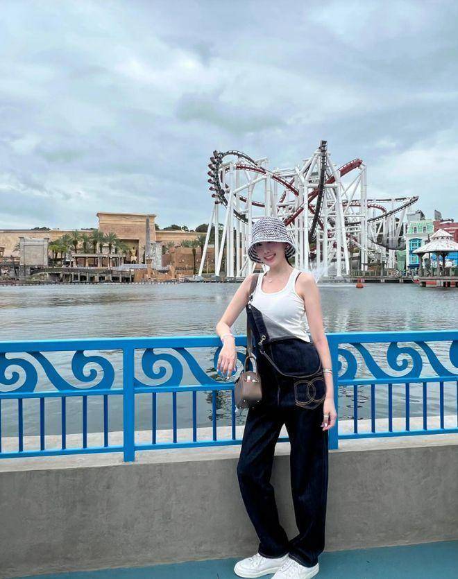 在著名景点小人国,陈若仪也颇有格调地留下身影。她身穿深蓝色连体裤,简约时尚,远远望去身材纤细如少女。从侧面看,挺拔身段依稀可辨,有着独特的东方女性韵味。