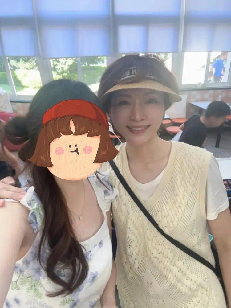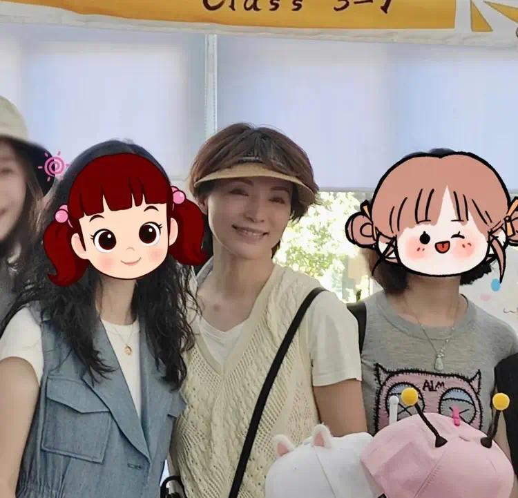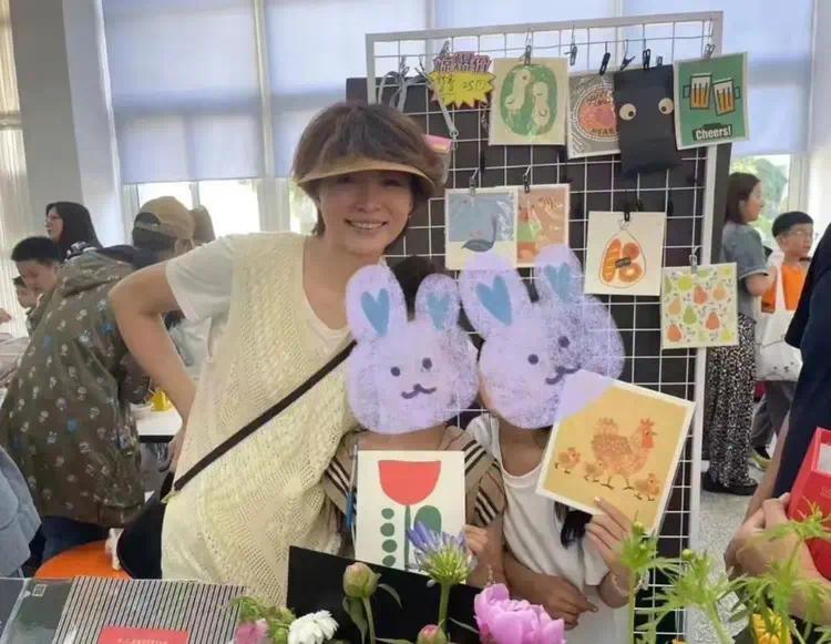 有一次是6月份,她去儿子学校参加义卖活动。当时,她戴着遮阳帽,身穿一件白色T外搭鹅黄色的针织马甲,还背着一个包包,看起来挺漂亮的,状态较主持前松弛了很多。