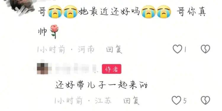 还有网友表示,她最近一切都还好,这次是带儿子一起来的。
