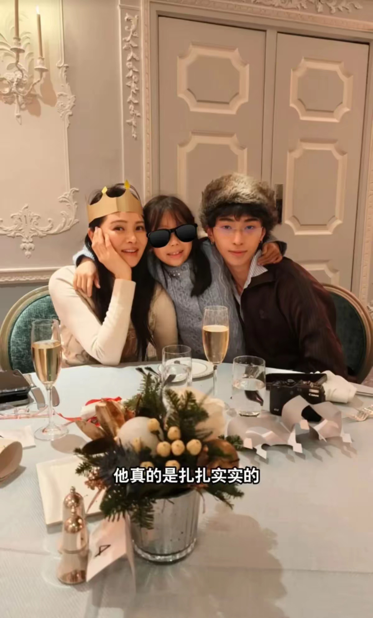 婆婆穿黑色大衣,站在C位,双手挽着伊能静的姐姐。这画面真的太有爱了,伊能静戴着毛茸茸的白色帽子、显得特别年轻。