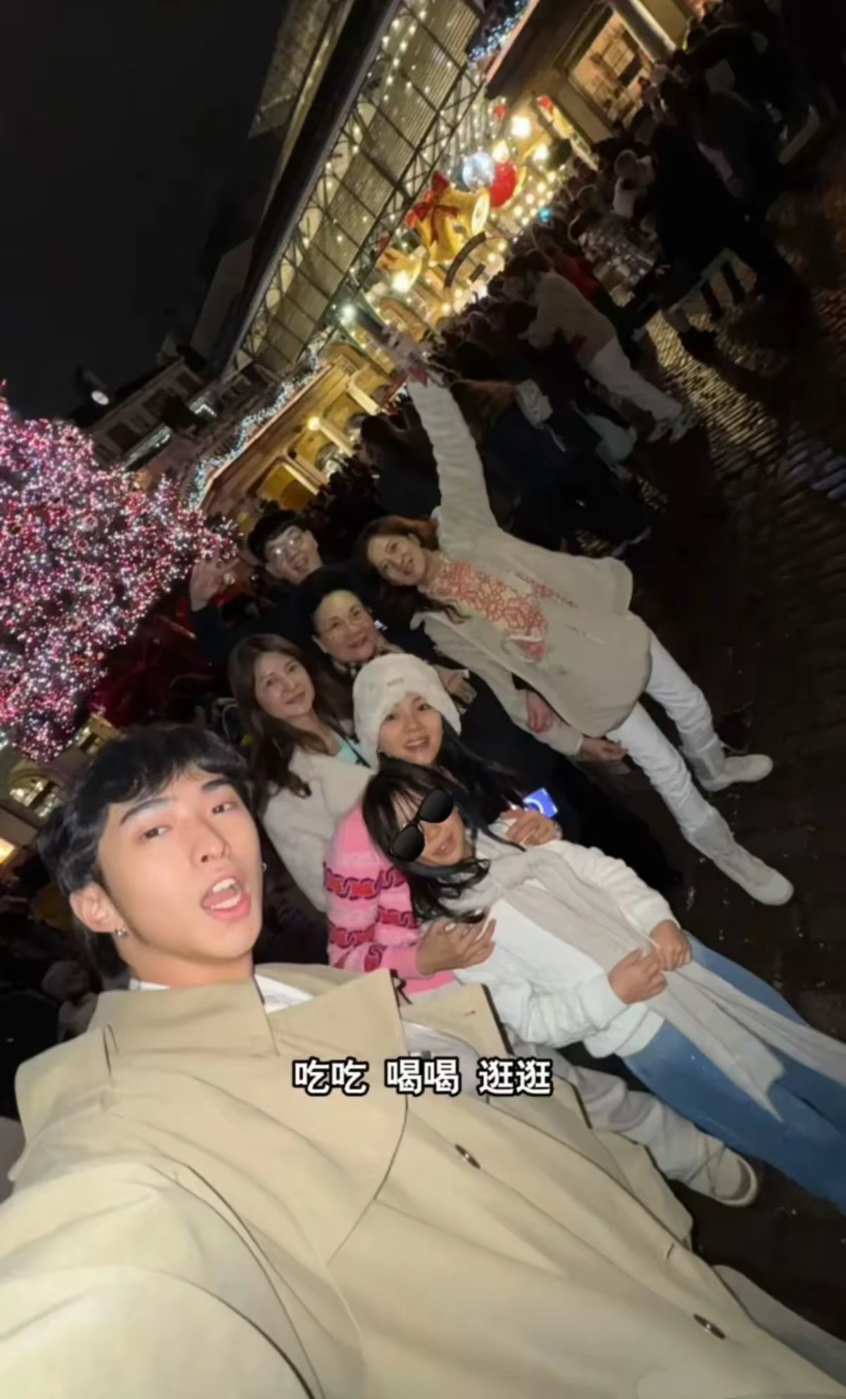 伊能静一行人浪漫的夜景里拍照,他的儿子好帅气。恩利23岁了,他的长相很俊俏、五官比较精致、是那种很耐看的男生。