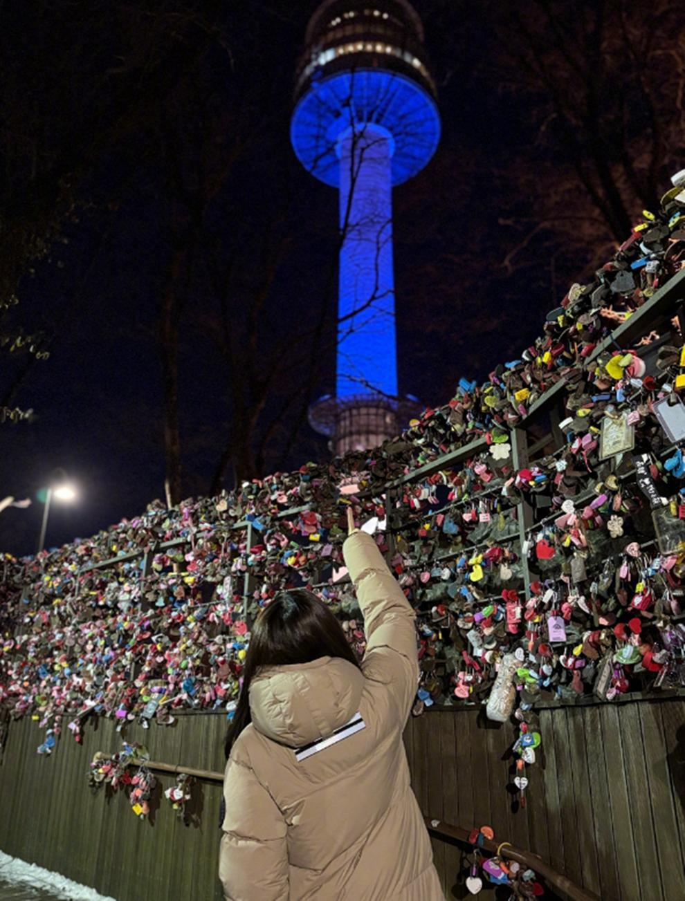 和俞灏明一起到韩国度假的王晓晨,两个人爬上零下28度的山顶挂了同心锁,隔着屏幕都有被他们的幸福感染到。