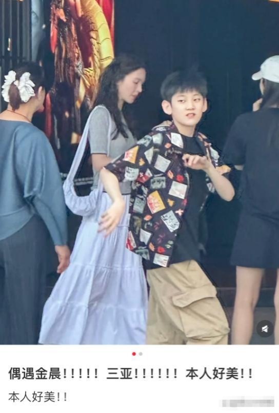 还有网友幸运地拍到了金晨外甥的正面照,他长相清秀帅气,五官精致,眉眼间透着一股灵气。配上这身时尚的穿搭,整个人散发着一种青春偶像的气质,有着爱豆般的魅力。外甥不仅遗传了小姨的美貌基因,性格也和金晨十分相似。他边走边跳,双手欢快地甩来甩去,活泼有趣的模样和金晨如出一辙。看到他,就仿佛看到了金晨年少时的影子,充满了朝气与活力。