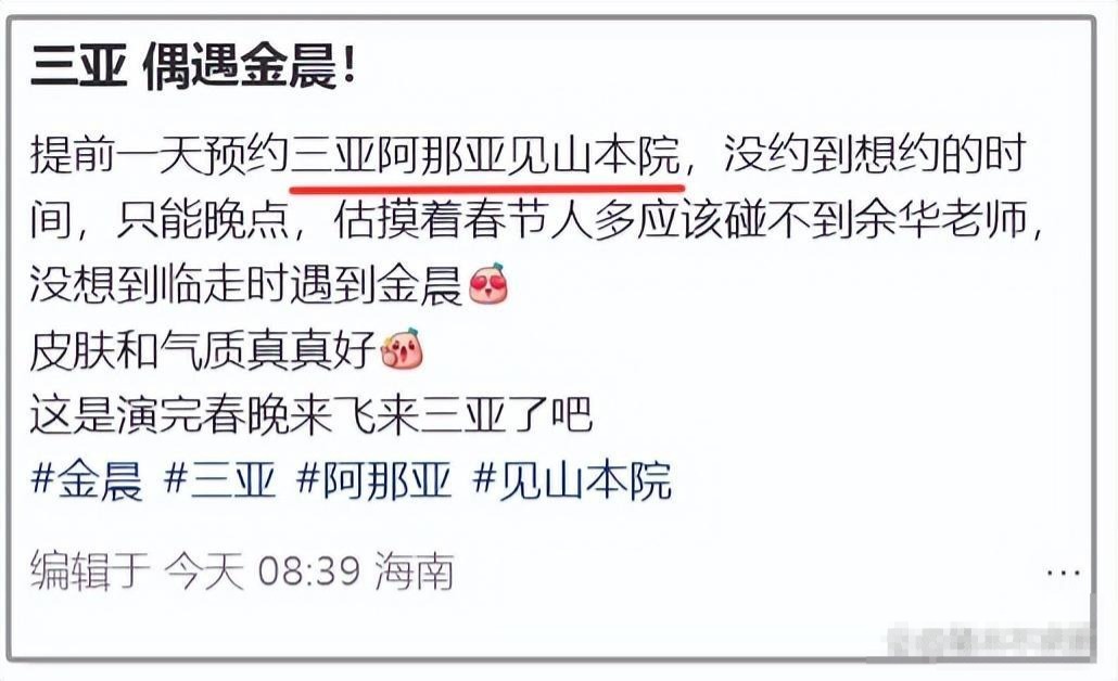 蛇年春晚的舞台上,金晨以其惊艳的表演美出新高度,给观众留下了深刻的印象。下了春晚后,她便将宝贵的时间留给了家人。当人们还沉浸在新年的喜庆氛围中时,多位网友在阿那亚幸运地偶遇了金晨一家人。只见金晨和姐姐带着外甥,在阿那亚的各个景点悠然自得地四处游走,他们的欢声笑语回荡在小镇的每一个角落,一家人其乐融融的状态引发了网友们的热烈讨论。