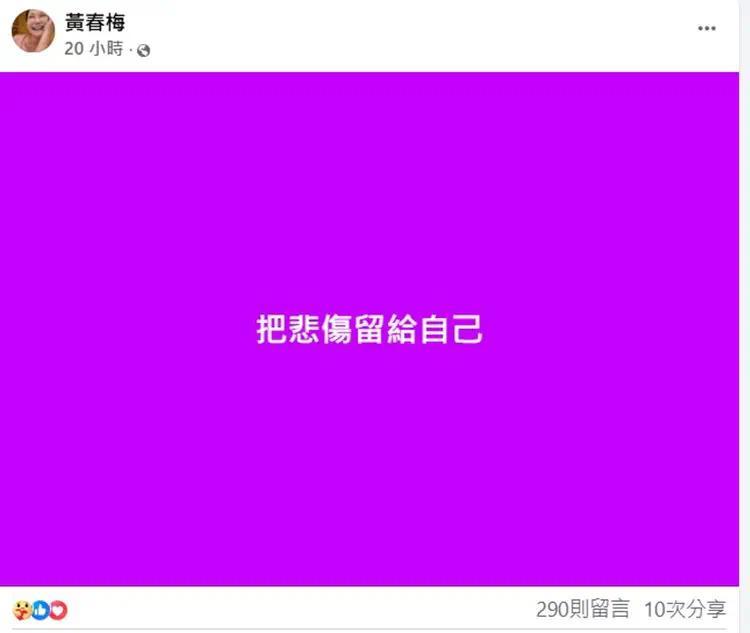 2月11日,黄春梅(徐妈)通过个人账号分享《把悲伤留给自己》的MV片段表达自己的当下的心境,她还有留言:“越开心越痛苦”,疑似在间接告诉大家自己相当自责。