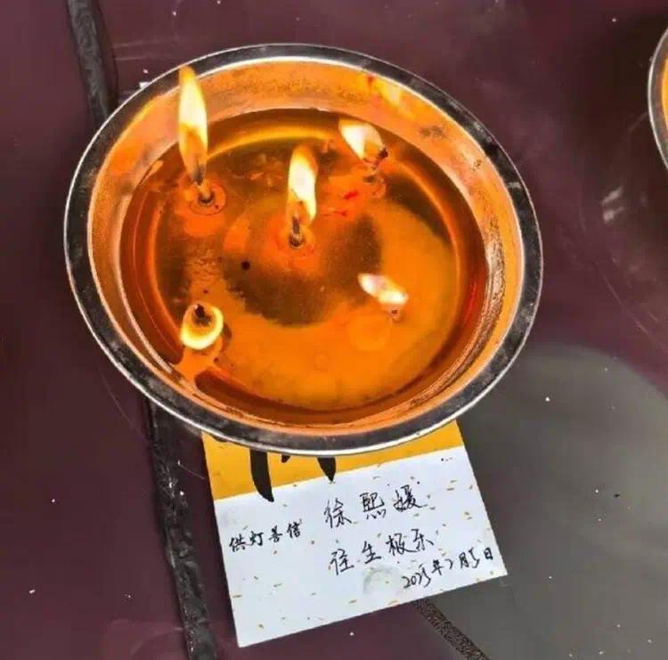 并且油灯是一直点着持续燃烧,粉丝写着:供灯善信,徐熙媛,往生极乐,2025年2月5日!