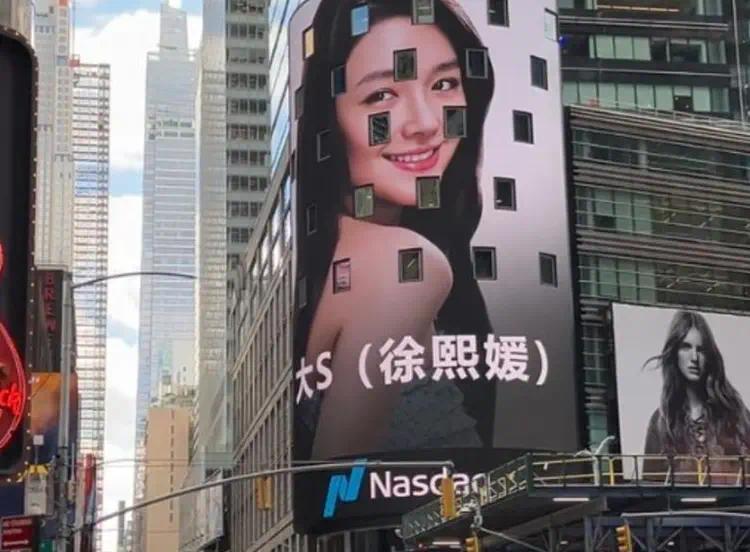 除了为大S点长眠灯的善心粉丝,还有粉丝花巨资让她昔日最美的一面登上了纽约时代广场的大屏幕上,还有南京的某广场上也有放映她生前的怀旧影片。