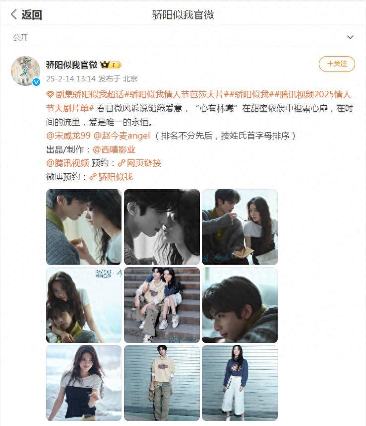 据悉,近段时间的赵今麦和宋威龙合作的电视剧《骄阳伴我》也已经开机,两人的情人节海报也充满着甜蜜与浪漫,这也让人更加期待着该作品了。赵今麦将手搭在宋威龙的肩膀上,目光温柔且专注,传递出一种眷恋与依赖。两人的互动自然而亲密,营造出一种温馨甜蜜的氛围,仿佛在诉说着恋人之间的深厚情感。