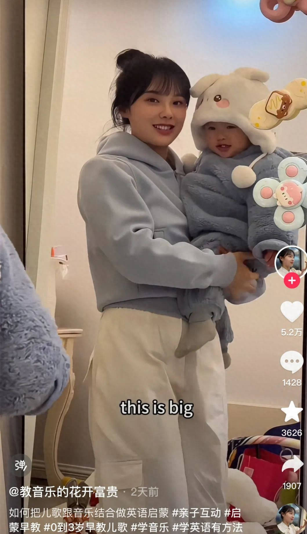 最近,黄老师发布了一则新的视频,视频中的她不再像以前那样教别的宝宝,而是抱着自己可爱的宝宝对着镜子做早教。在这个视频里,她将儿歌和音乐完美地结合起来,进行英语启蒙,这种新颖又实用的早教方式让人忍不住称赞。视频一经发布,就引来了一众新手妈妈们的热议,大家纷纷留言,甚至有人称“挖呀挖黄老师”已成“早教王者”。