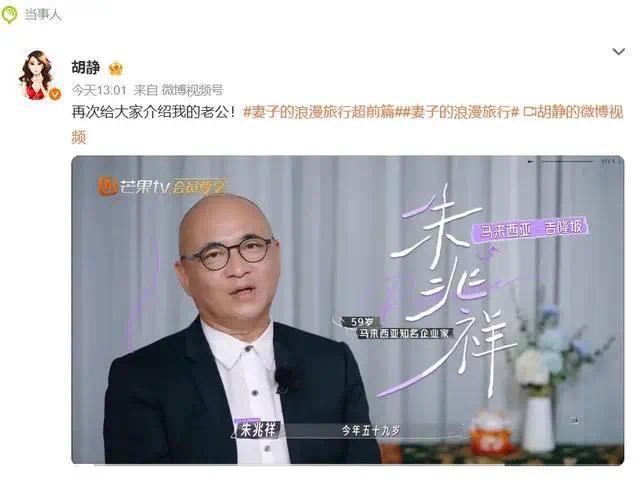 2月20日,知名女星胡静晒出携老公参加综艺《妻子的浪漫旅行》的片段,再次介绍自己的老公,透露对方从事殡葬行业。