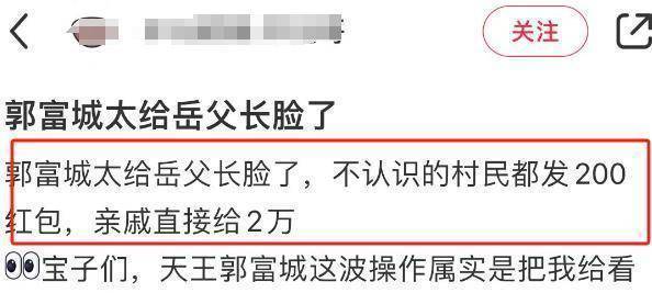 郭富城又回安徽岳父家,这消息一出,可真是让不少网友炸了锅!要说这郭天王,不仅歌唱得好,舞跳得妙,对家庭那也是没得说,尤其是对妻子方媛的娘家,那简直是体贴入微。这不,最近他又低调地回到了安徽南陵县的岳父家,一番举动让人不得不感叹:这女婿,真是没得挑!