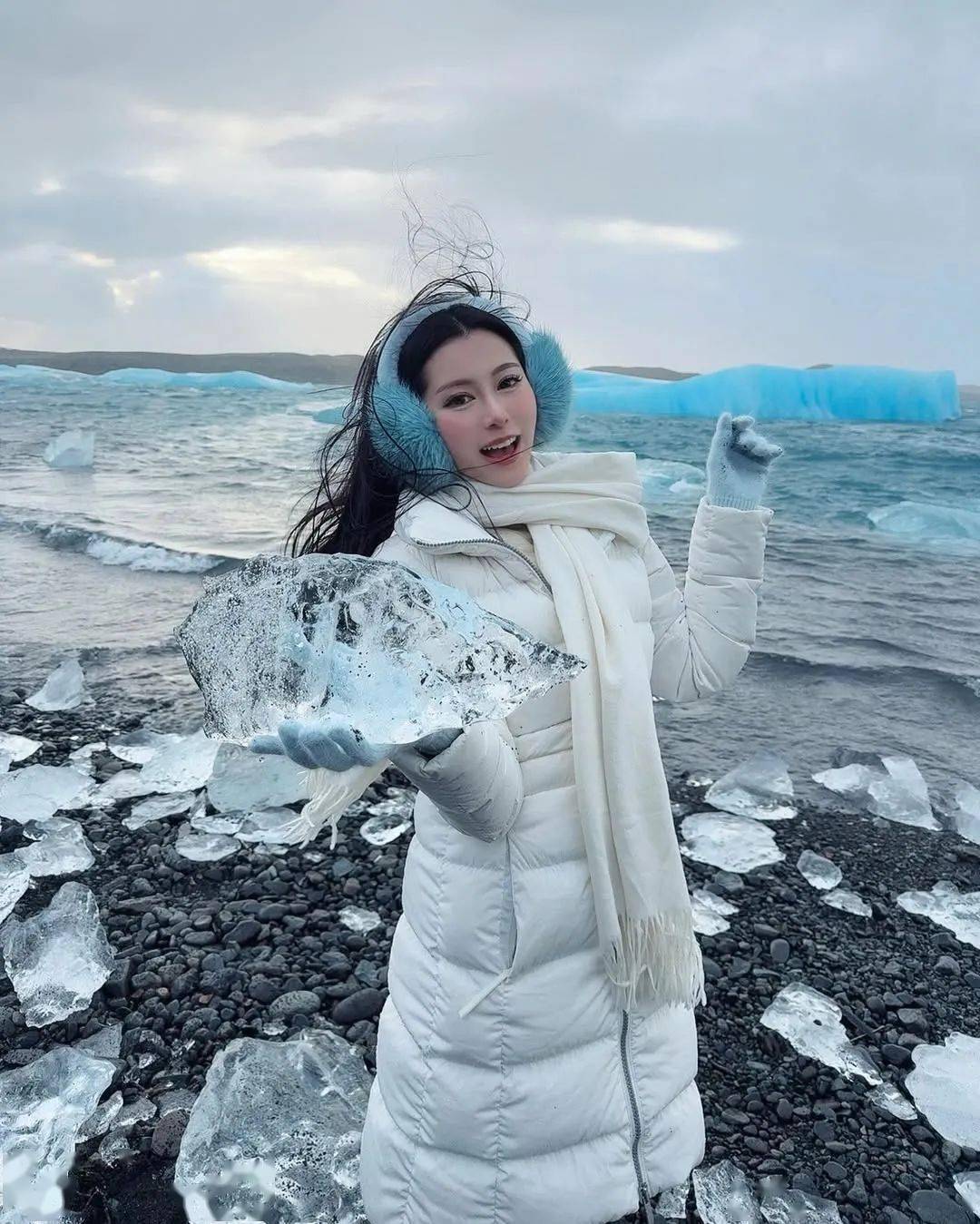 虽然有意外,但更多是当地景色带来的震撼,关楚耀太太早前还分享感悟,发文称:2025年我来到小时候觉得遥不可及的那个地方——冰岛,世界尽头最纯净之地!人生最想去的地方之一完成,一生一定要来一次,这些蓝色冰块是数百万年前冰川挤压形成的,内部气泡极少,上面的冰雪日复一日融合又凝结,使得冰川拥有了异乎寻常蓝色的高密度蓝,人们称它为”冰川蓝”,瓦特纳冰川正以每天130亿升的惊人速度在融化,冰河湖上大量的浮冰,都是冰川消融的代价,一百年后的冰川会完全消失,趁年轻有能力,早点去看看,站在这些震撼的大自然美面前,内心百感交集,来到这里,你真真切切的感受到全球暖化的严重。