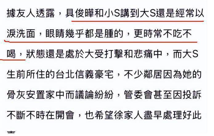 一开始,妹妹小S说不给姐姐安葬,骨灰就放在家里,引起了很多人的强烈不满,尤其是大S的邻居。