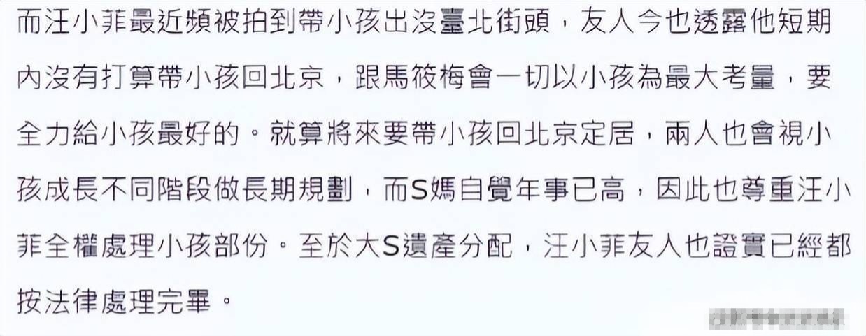 另外S妈形容自己已经放手,一切都交给他们处理。汪小菲带孩子们走,也只希望他们对孩子们好。