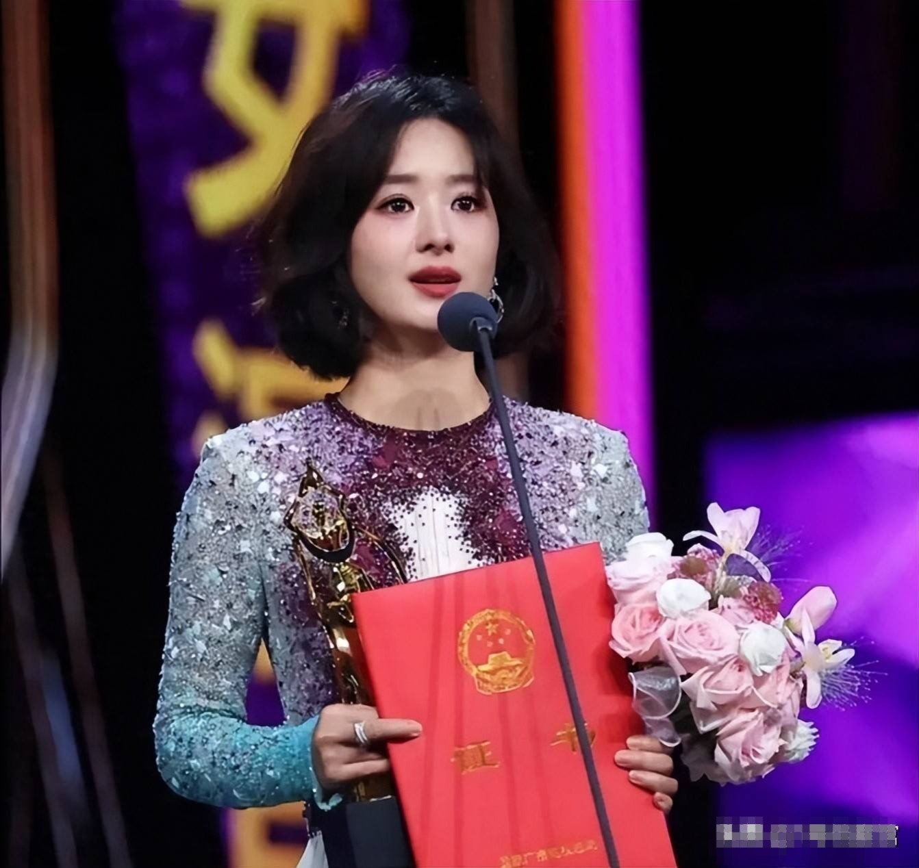 在去年这一年,她成功拿到了属于自己的视后奖杯,领奖时她也曾潸然泪下,