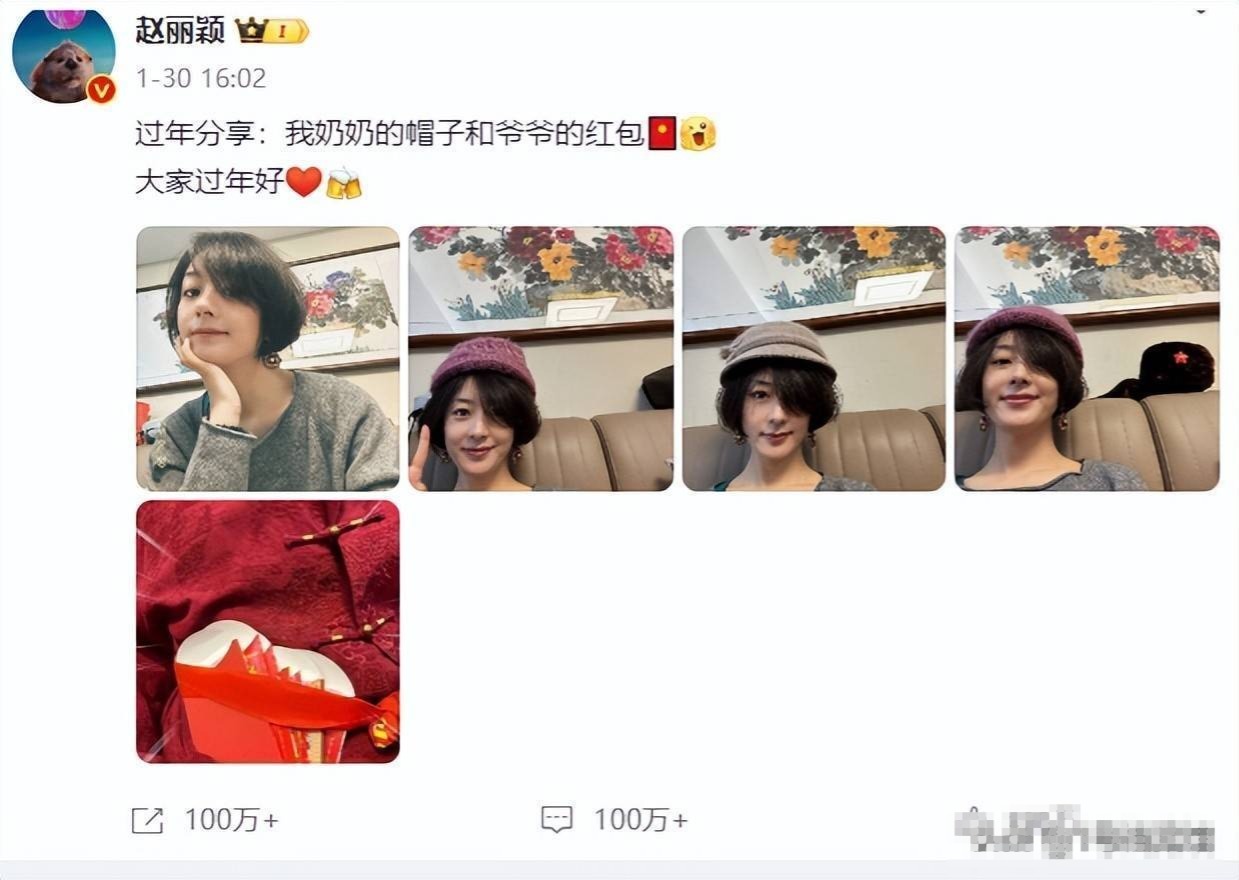 除此之外近期的动态就是过年时,她分享了自己戴着奶奶帽子的自拍,