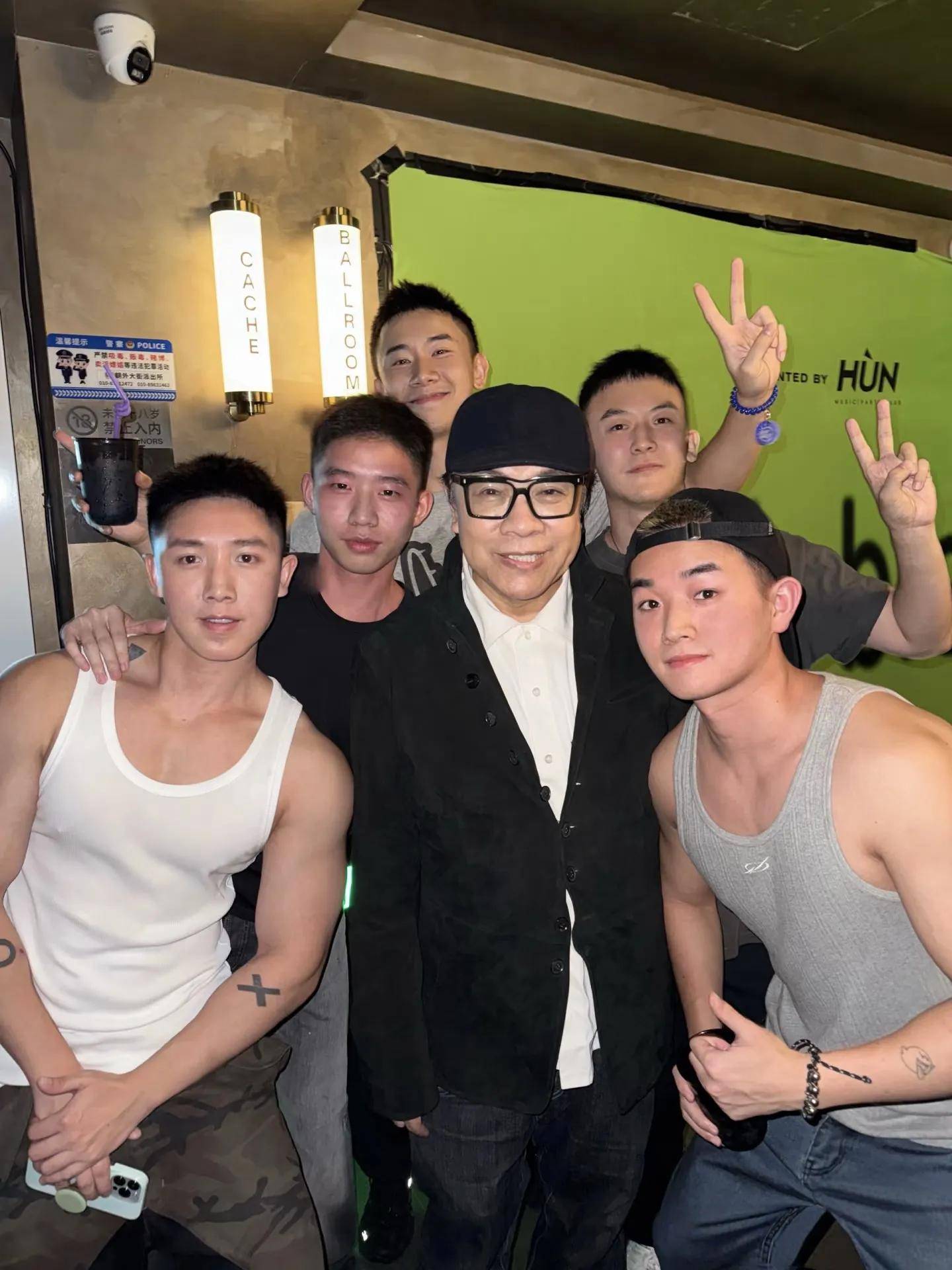这五个帅哥啊,都是留着寸头的小鲜肉,长相帅气,身材也棒。蔡康永被这么多壮男围绕,脸上那是笑开了花,看来心里也是美滋滋的。据悉,这家酒吧可是当地很多年轻人喜欢去的地方,晚上还有驻唱歌手表演,精力旺盛的少男少女们在舞池里尽情狂欢,那场面,别提有多热闹了!