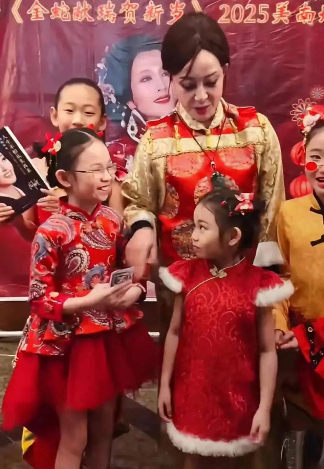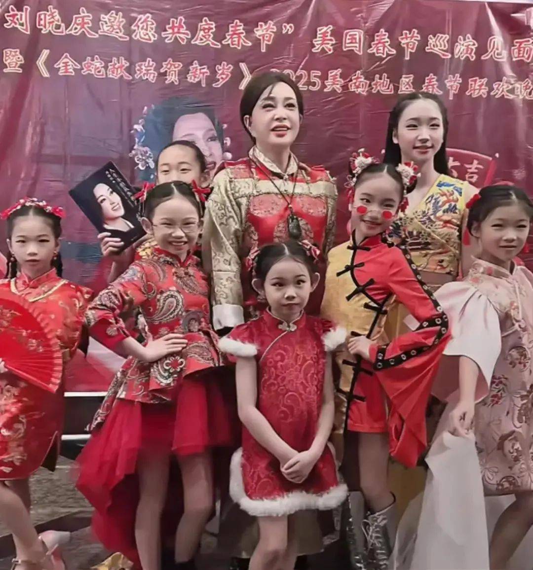 表演结束后,刘晓庆还和小粉丝们一起拍了合照,非常有亲和力!