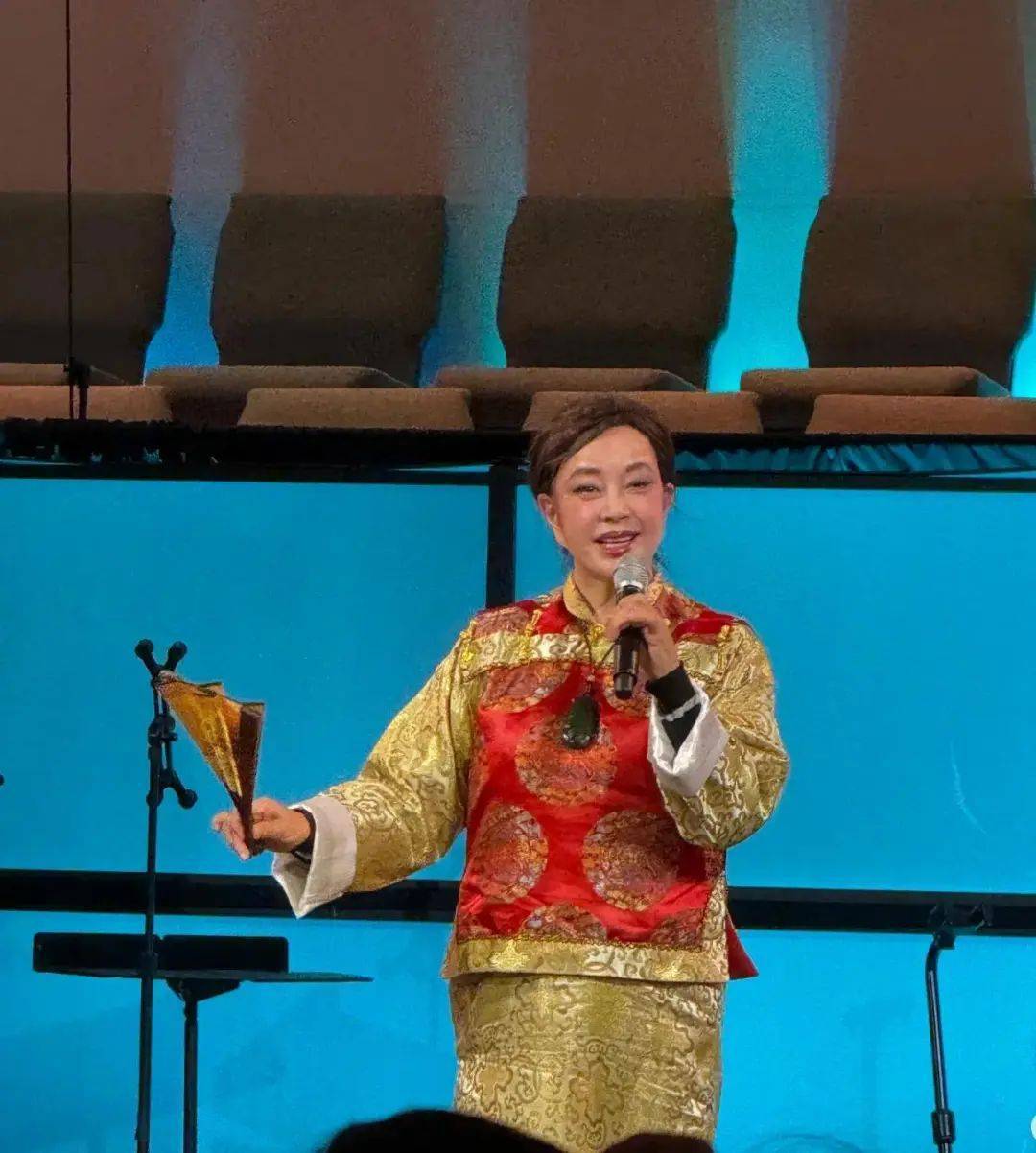 2月24日,刘晓庆又在美国达拉斯演出,从观众分享的动态来看,她当天穿了一件古装,拿着扇子,扎着麻花辫,脖子上挂着一块很大的宝玉,英姿飒爽,非常霸气,像电视剧里的一代女皇!