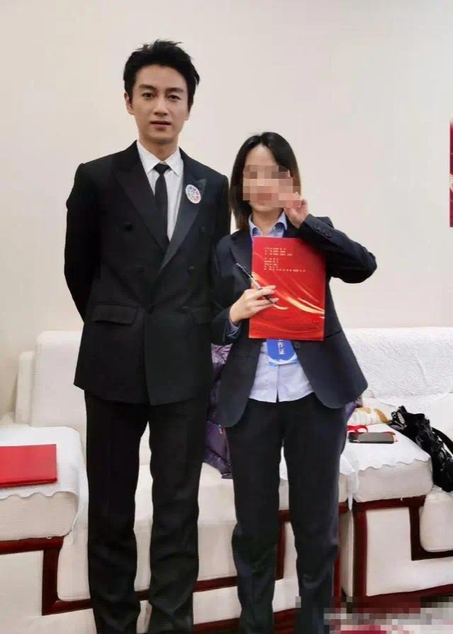 与现场工作人员的合照更有“星味”,笔挺的站姿和纤细的身材,状态回春,又回到了大众印象里,那个俊朗帅气的模样。