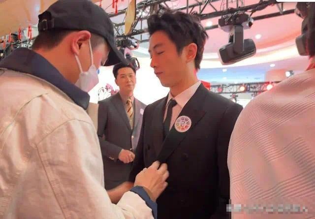 工作人员为其整理西装时,他一脸轻松的跟他人聊天,看得出今天陈晓的心情相当不错,完全走出了前段时间的离婚风波,一副准备“杀回”古偶小生市场的状态。