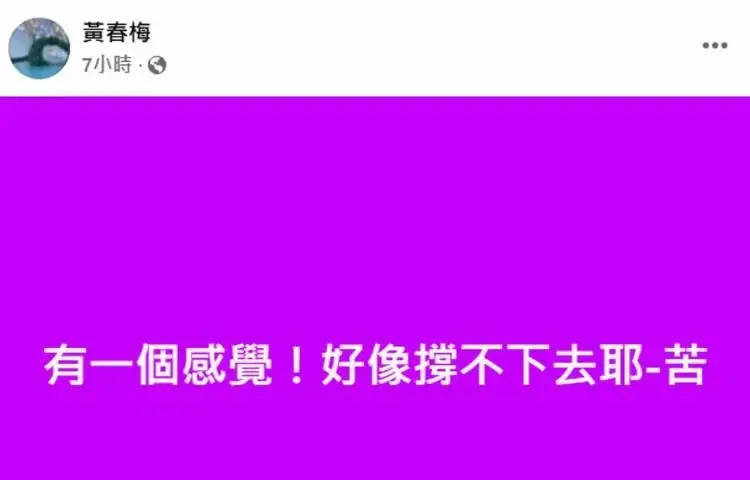 3 月 9 日凌晨,S 妈黄春梅现身社交平台,发动态感慨道:“有一个感觉!好像撑不下去耶,苦”。这条动态一经发布,便引发网友热议,不少网友纷纷留言表示 “担心她想不开”,并呼吁 “希望小 S 可以安慰安慰她” 。