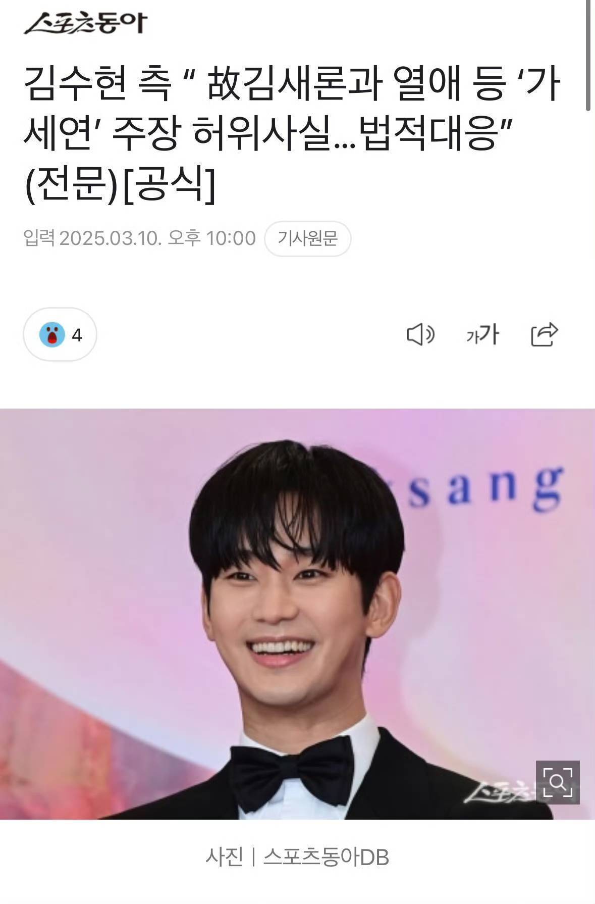 3月10日,金秀贤的所属公司Gold Medalist表示:“今日‘横竖研究所’在YouTube节目中对金秀贤提出的主张是明显的虚假事实。”