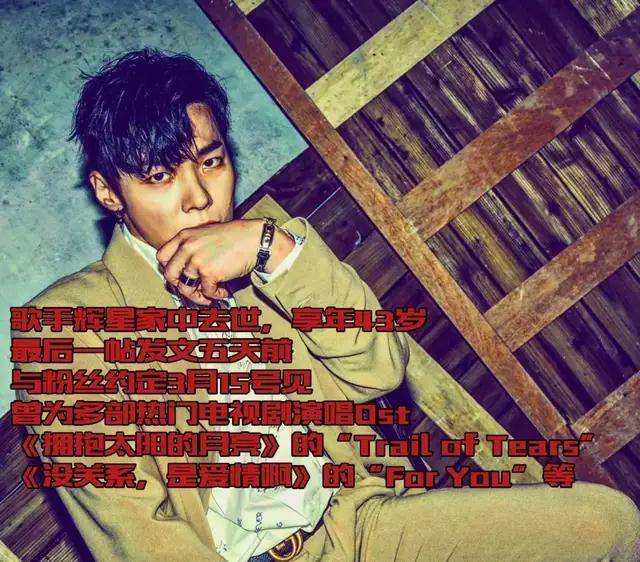 辉星的离世,不仅仅是他个人的悲剧,更是整个韩国乐坛的损失。他的音乐,曾经陪伴过无数人度过人生的低谷,给予他们力量和勇气。他的歌声,曾经传递过无数的爱和温暖,让这个世界变得更加美好。然而,如今这一切都成了回忆,辉星已经永远地离开了我们,他的歌声也只能留在我们的心中,成为我们永远的怀念。