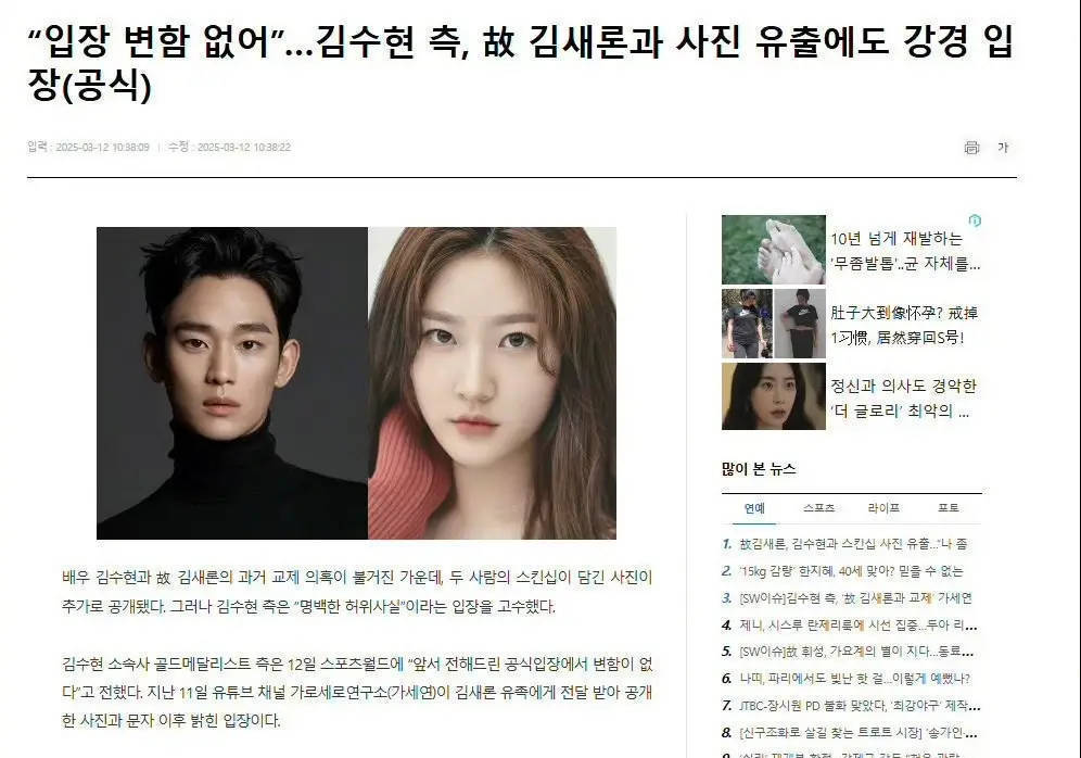 据韩媒12日报道,演员金秀贤陷入舆论风波,金秀贤所属公司Gold Medalist对金赛纶遗属的追加爆料回应称:“我们之前的立场没有改变。”此外,Gold Medalist对“横竖研究所”提出的多项质疑表示:“与金秀贤相关的主张是明显的虚假事实,我们正在考虑对横竖研究所散布虚假事实的行为采取最强有力的法律应对措施。”