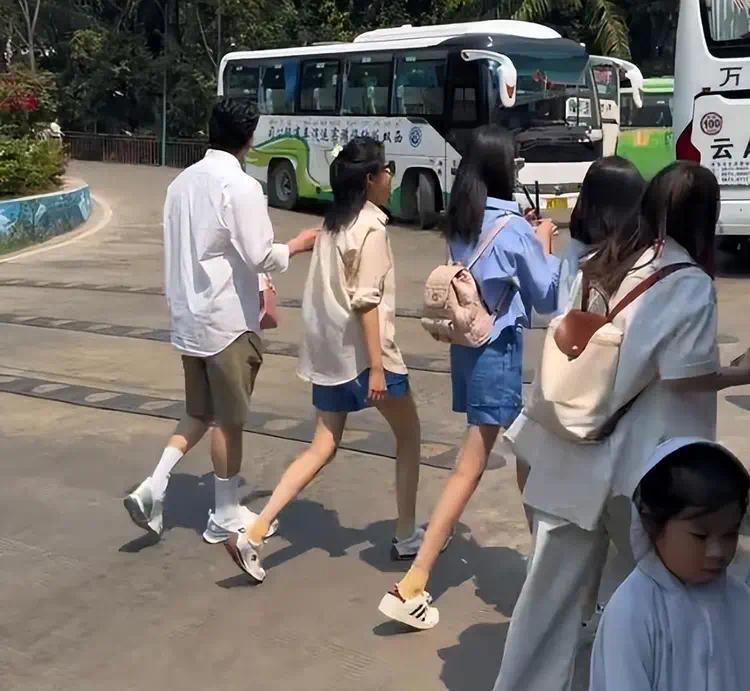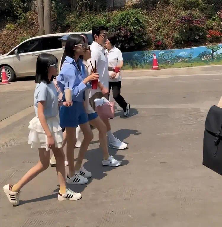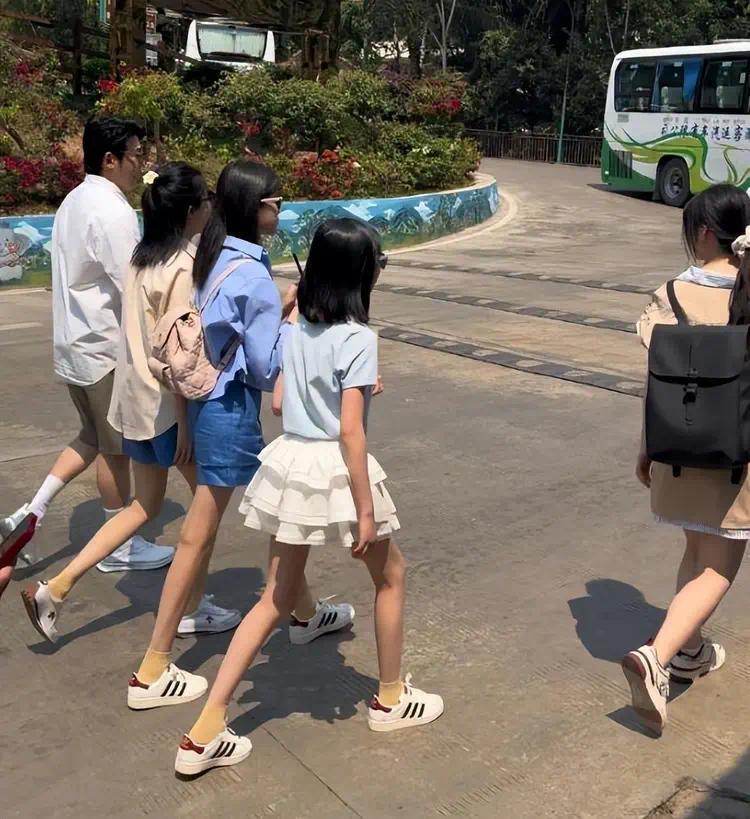 细看贝儿已经长成了大姑娘,和妈妈鲍蕾边走边聊,一家四口在野象谷相当吸睛,成为全场焦点。
