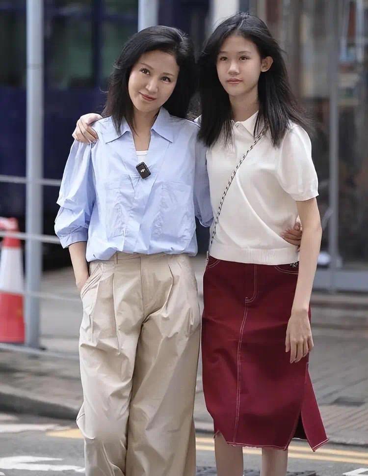 贝儿的身高完全超过了妈妈,在行走的时候明显比妈妈鲍蕾高出半个头。