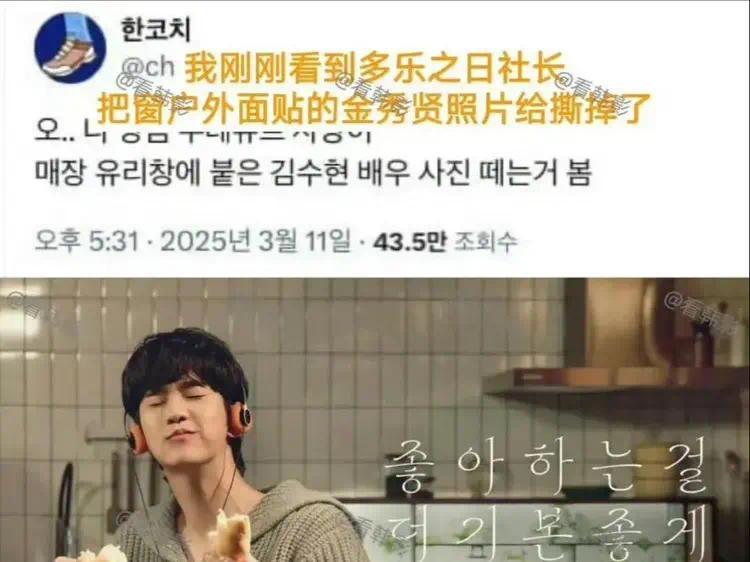多乐之日的社长把窗户上金秀贤的照片撕掉了。