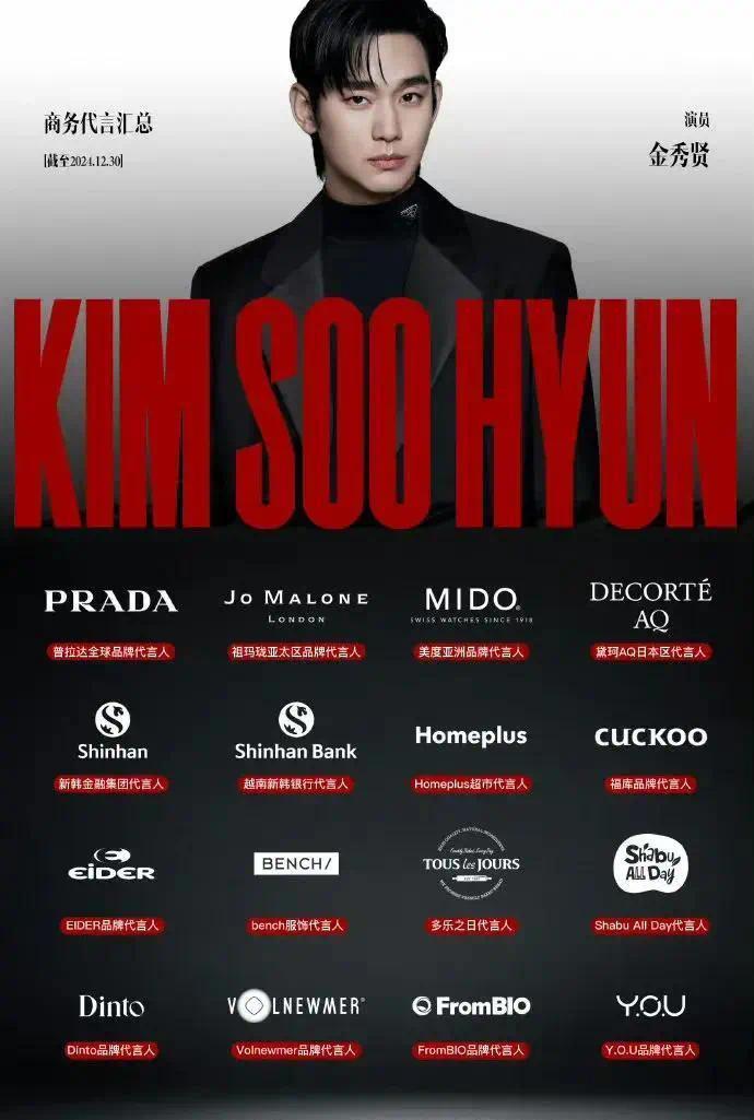 这是金秀贤的所有代言,期待所有的商家都宣布和他解约,退出娱乐圈吧!