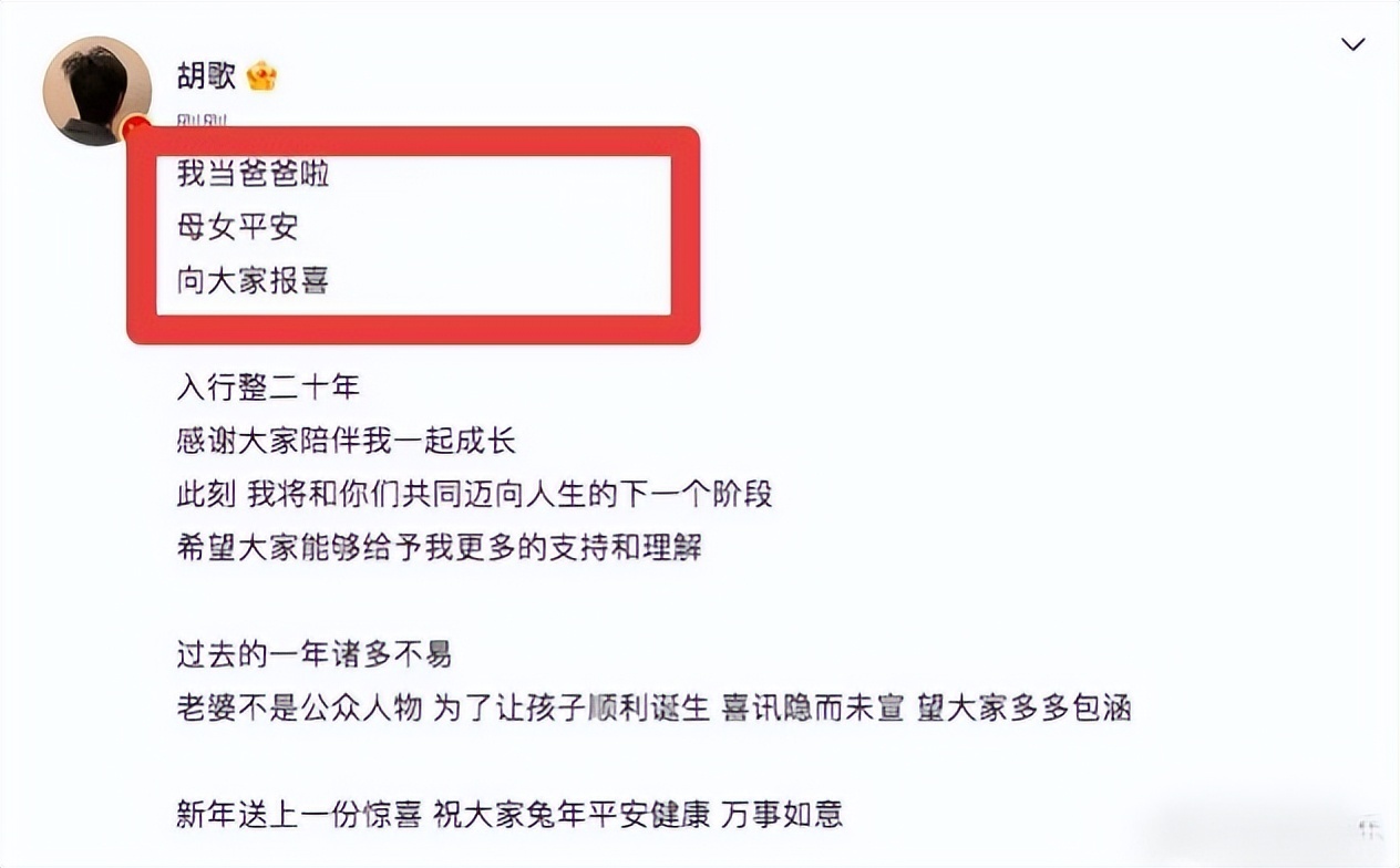 胡歌官宣结婚当爸时,他已经41岁了,这个年纪结婚生娃,让他有了很多感慨,胡歌曾说想再多活几年陪女儿。