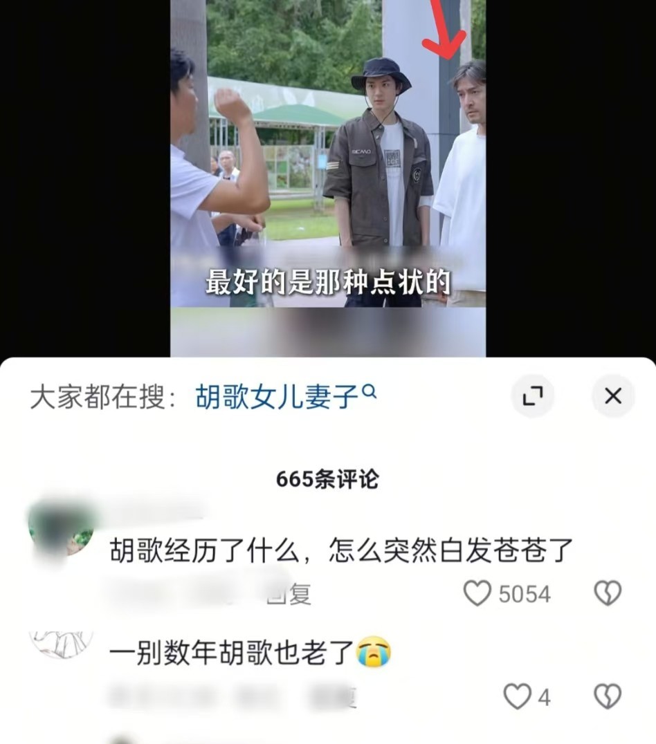 从视频截图来看,胡歌白发浓密、皱纹堆积,肉眼可见的憔悴了不少。