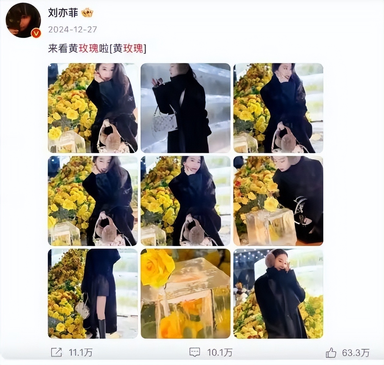 特别是自从《玫瑰的故事》大爆后,黄玫瑰似乎就变成了大家心目中,自由勇敢且浪漫的刘亦菲,只要一提到黄玫瑰,观众和网友就会不自觉地对号入座。所以余承东的这条视频加文案确实非常像官宣文案,戏剧性的是刘亦菲居然还点赞了!