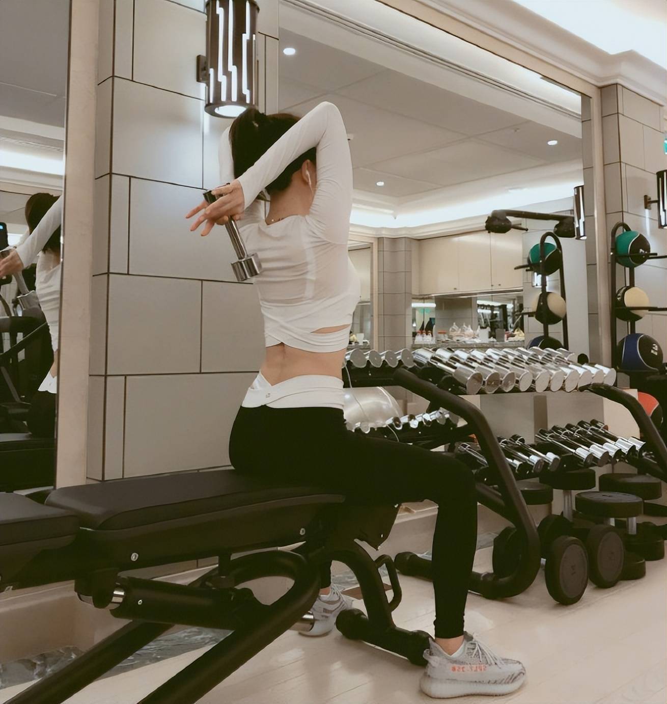 秦岚身材好已经不是秘密,除了瘦之外,完美的腰臀比才是上镜吸睛的关键,腰臀曲线展露无遗,瘦而不柴凹凸有致,背后是秦岚日复一日泡在健身房里努力的成果。