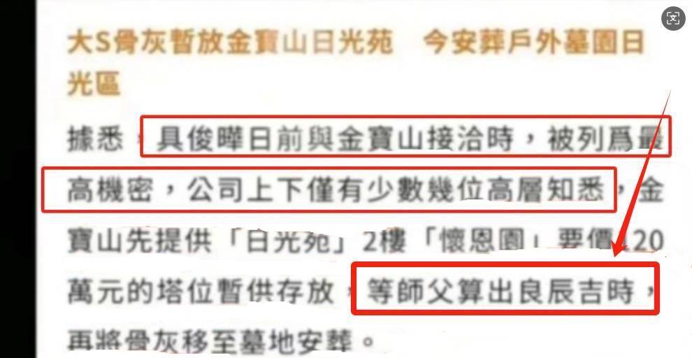当然了,客观来说该消息的真假是不确定的,所以大S亲属不惜冒雨也要下葬大S的原因,到底是不是因为当天是良辰吉日,大S亲属到底还有没有其他的选择,等等这些都有待进一步确认。