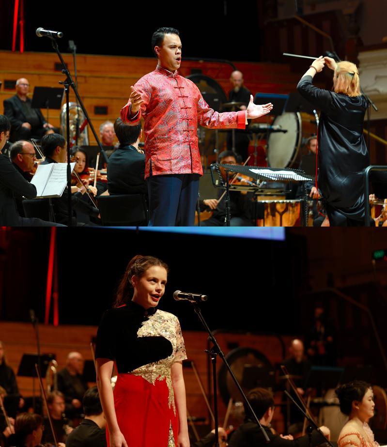 二胡协奏曲《第六二胡狂想曲》由青年二胡演奏家赵梓月演奏,在高难度技巧与交响框架中呈现民族器乐的当代表达;歌曲《大海啊故乡》由宋庆龄基金会中国文化小大使 Charlotte Phillips 演唱,以深情而宽广的音色传递跨越地域与文化的情感共鸣。新生代青年音乐家以精湛技艺与蓬勃朝气,在交响舞台上诠释文明互鉴与艺术创新的时代精神,彰显中新两国青年力量在文化传承与国际交流中的自信与担当。