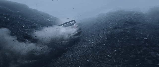 有一场戏让人印象特别深,引擎盖突然掀起遮挡住90%的视线,张驰只能弯腰透过仪表台的狭窄缝隙勉强看路。后来才知道,这竟然是对2017年加泰罗尼亚拉力赛曾发生的真实事件的致敬。