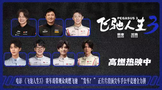 电影《飞驰人生3》由韩寒编剧并执导,沈腾领衔主演,尹正、黄景瑜、张本煜领衔主演,魏翔、沙溢主演,范丞丞、孙艺洲主演,段奕宏特邀主演,张新成、胡先煦、李治廷、白宇帆、周政杰、高华阳特别出演,贾冰、王安宇、陈永胜、冯绍峰、郝瀚友情出演。影片由上海亭东影业有限公司、天津猫眼文化传媒有限公司、大麦娱乐(北京)有限公司、万达影视传媒有限公司、北京博纳影业集团有限公司、中国电影产业集团股份有限公司、浙江开心麻花影业有限公司、浙江横店影业有限公司、上海儒意影视制作有限公司出品,正在高燃热映中。